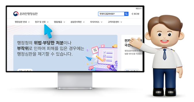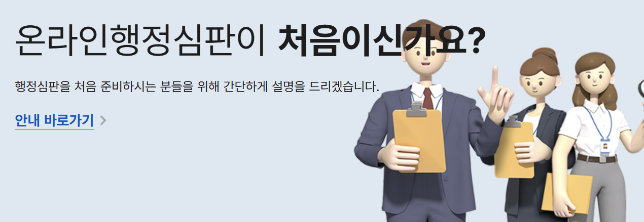 새롭게 개통된 시스템에서는 다음과 같은 절차를 거쳐 간단히 행정심판을 청구할 수 있습니다