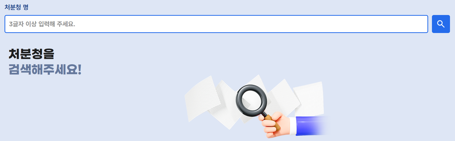 자신이 문제를 제기하려는 행정처분의 발급기관(예: 구청, 국민건강보험공단 등)을 입력하면 관할 심판기관이 자동으로 연동됩니다.